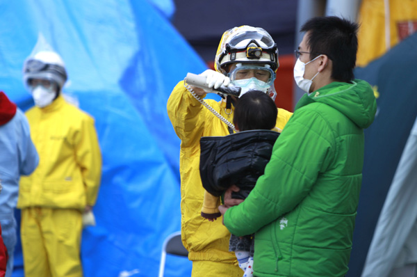 | ▲ 강진 발생 사흘째인 13일 후쿠시마현 고리야마에서 후쿠시마 원전 인근 대피 주민들이 피폭 검사를 받고 있다. (고리야마(일본)=AP/뉴시스) | ||