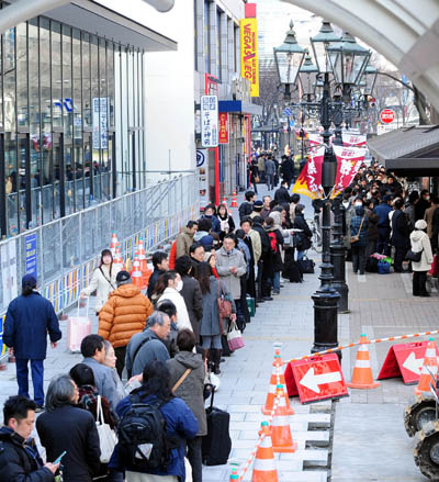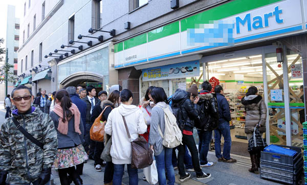 | ▲ 13일 오후 미야기현 센다이시 일대에 있는 편의점에 시민들이 생필품을 사려고 줄지어 대기하고 있다.(미야기 현(일본)=뉴시스) | ||