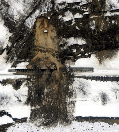 | ▲ 12일 니가타현에서 또다시 지진이 발생해 에치고다나카 역 인근 철로가 산사태로 뒤덮여 있다. (에치고다나카(일본)=AP/뉴시스) | ||