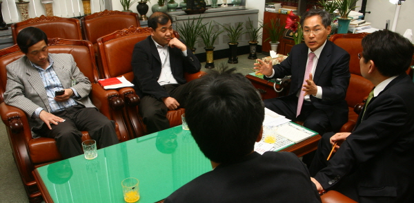 이강택 언론노조 위원장과 엄경철 KBS본부장, 정영하 MBC본부장, 이윤민 SBS본부장, 현준철 SBS아트텍지부장은 11일 우윤근 국회 법제사법위원회 위원장(민주당)을 만나 방송법 개정안이 위헌성이 있다고 지적했다.