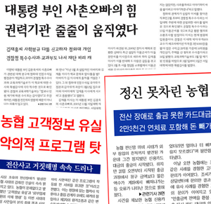 첫 보도는 지난 19일 1면에 게재된 ‘농협 고객정보 유실 악의적 프로그램 탓’으로, 이 기사는 온라인편집부 뉴스팀 이다일 기자가 온라인용으로 취재하다가 사안의 중대성으로 1면에까지 실리게 됐다. 금융팀 기자들의 도움도 있었다. 이 보도로 후속 기사들이 모두 1면에 게재되는 발판이 마련됐다. 3,4번째 단독 기사는 인터넷 기사를 본 누리꾼들이 뉴스팀에 제보를 해와 보도될 수 있었다.