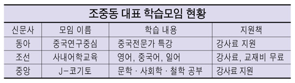 조중동 사내 학습모임 지원책동아, 조선, 중앙일보는 각종 지원책을 제시하며 사내 공부모임을 장려하고 있다.