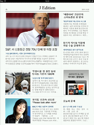 중앙 측은 “아이패드 2 출시에 맞춰 ‘아이패드 속 섹션신문’을 새롭게 시도했다”며 “‘J-에디션’은 매일 오전 4시 자동 업데이트된다”고 밝혔다.