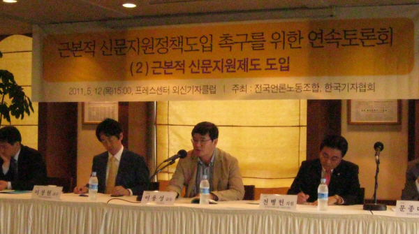 전국언론노조와 한국기자협회 주최로 12일 서울 중구 한국프레스센터 18층 서울외신기자클럽에서 열린 ‘근본적 신문지원정책 도입 촉구를 위한 연속토론회’에서 발제자 이용성 한서대 교수(신문방송학)는 가칭 ‘신문산업진흥특별법’의 제정이 필요하다고 역설했다.