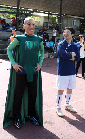 ▲ "간 때문이야. 피곤한 간 때문이야." 14일 고양시 중산인조잔디구장에 나타난 축구 국가대표 차두리(?) 선수. 이날 한국경제 응원단이 차두리 응원복장을 선보여 눈길을 끌었다. |