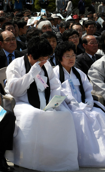 | ▲ 5·18 민중항쟁 제31주년 기념식이 열린 18일 오전 광주 북구 운정동 국립 5·18민주묘지에서 행사에 참석한 5·18 희생자 유족이 눈물을 훔치고 있다. (뉴시스) | ||