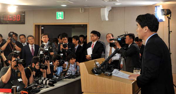 ▲ 16일 오후 이주호 교육과학기술부장관이 서울 세종로 정부중앙청사에서 '국제과학비즈니스벨트 위원회'에서 확정한 입지선정결과를 발표하고 있다. (뉴시스) |