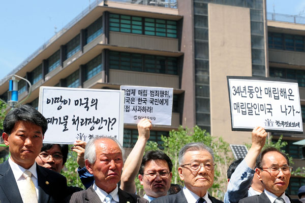 | ▲ 23일 오후 서울 종로구 주한 미국대사관 옆에서 열린 '주한미군 고엽제 매립 범죄 진상규명 촉구 기자회견'에서 환경단체 및 시민단체 등 관계단체 회원들이 기자회견을 하고 있다. (뉴시스) | ||