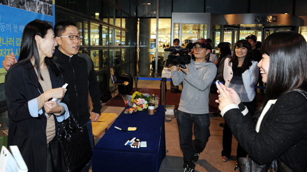 ▲ 지난달 3일 서울 종로구 종로1가 교보문고 광화문점에서 열린 ‘김제동이 만나러 갑니다’ 출간 사인회에서 방송인 김제동씨가 한 여성팬과 사진을 찍고 있다. (경향신문 제공) |