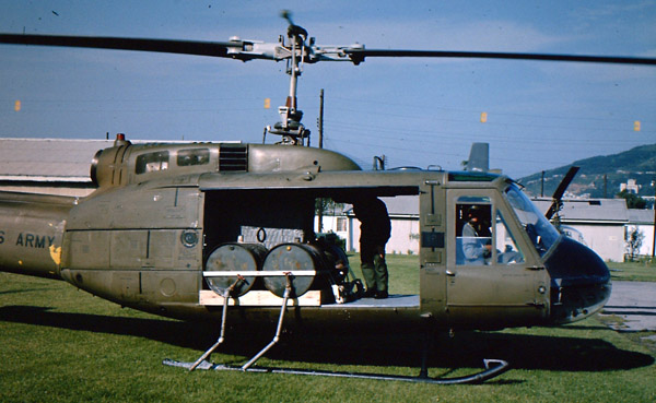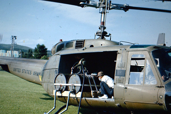 ▲ 지난 1968년 미군 항공 6소대가 춘천 캠프페이지 내에서 고엽제를 헬기에 싣고 있다. (사진=강원도민, 짐 힐튼) |
