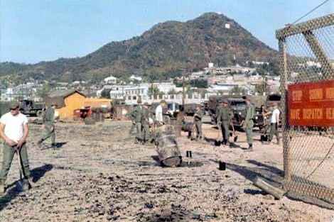 ▲ 캠프페이지 미군들이 방호복도 없이 고엽제와 제초제를 묻는 작업을 하고 있다. (사진=강원도민일보, 댈러스 스넬) |