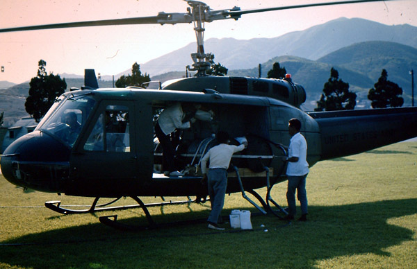 ▲ 지난 1968년 미군 항공 6소대가 춘천 캠프페이지 내에서 고엽제를 헬기에 싣고 있다. (사진=강원도민일보, 짐 힐튼) |