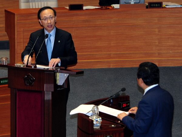 ▲ 현인택 통일부장관이 3일 오전 서울 여의도 국회에서 열린 외교·통일·안보분야 대정부 질문에서 의원들의 질문에 답하고 있다. (뉴시스) |