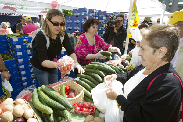 ▲ 8일(현지시각) 스페인 마드리드에서 시민들이 오이를 비롯한 무료 채소를 받아가고 있다. 스페인의 농민연합 COAG는 최근 독일에서 발생한 장출혈성대장균의 원인이 스페인산 채소라는 그릇된 주장과 이에 따른 불안감을 없애기 위해 이날 40여 톤의 채소와 과일을 무료로 나눠주는 행사를 했다. (마드리드(스페인)=신화/뉴시스) |