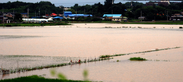 | ▲ 11일 오후 전북 군산시 성산면 둔덕마을 농경지가 10일부터 내린 폭우로 인해 침수됐다.(뉴시스) | ||