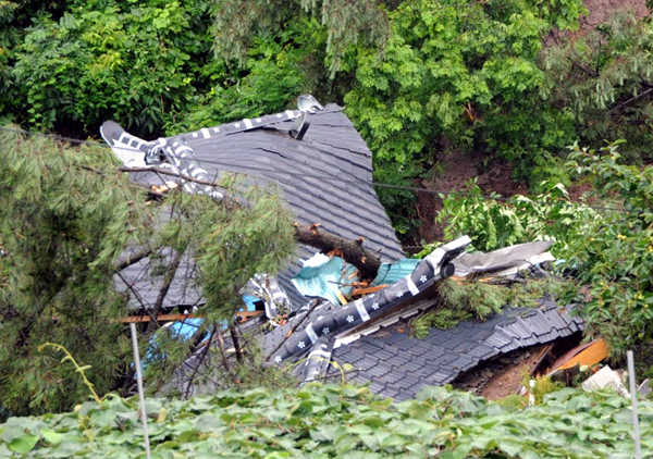 | ▲ 11일 전남 순천시 해룡면 신대리 산두마을 농가 두채가 산사태로 무너진 흙과 나무들로 뒤엉켜 지붕만 보이고 있다. 이 농가는 9일밤 집중호우에 따라 피해를 입었지만 주민들은 대피해 인명피해는 발생하지 않았다.(뉴시스) | ||