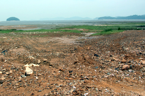 | ▲ 경기 안산시 대부도에 건설중인 I골프장이 안전대책을 제대로 지키지 않고 공사를 강행, 지난 3일 내린 폭우에 대량의 토사가 바다로 휩쓸려 갯벌생태계를 파괴하고 있다. 지난 5일 토사에 뒤덮힌 안산시 대부남동 1251번지 작은망생이 마을 앞 바닷가.(뉴시스) | ||
