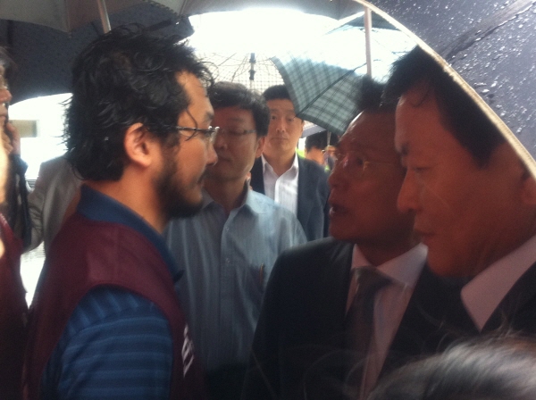 이 사장은 오전 11시쯤 프레스센터 앞에 도착했으나 노조원들의 대오에 밀려 일단 인근 호텔로 자리를 옮겼다.