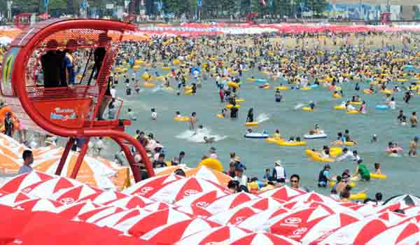 | ▲ 장마가 끝나고 무더위가 시작된 17일 오후 부산 해운대 해수욕장에서 수십 만명의 피서객들이 몰려 물놀이를 하고 있다. (뉴시스) | ||