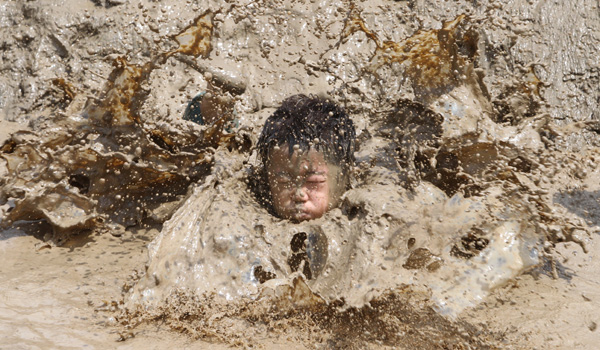 | ▲ 기나긴 장마가 물러가며 뜨거운 햇살이 내리 쬔 17일 경기 평택 고덕면 궁리 바람새 마을 논풀 머드축제장에서 어린이들이 머드체험을 하며 무더위를 즐기고 있다.(뉴시스) | ||