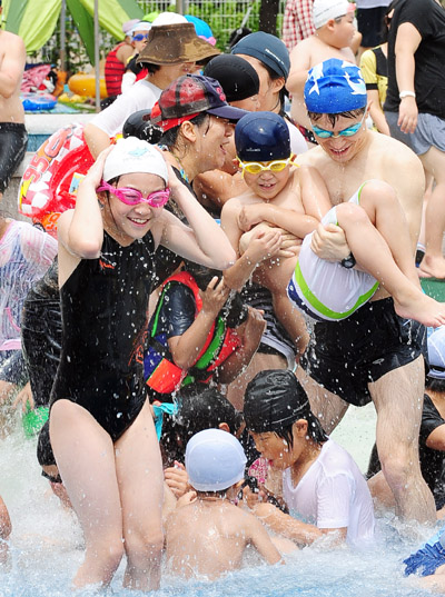 | ▲ 지난달부터 3주 동안 지루하게 이어지던 장마가 물러간 17일 오후 서울 광진구 한강공원 뚝섬수영장에서 시민들이 물놀이를 즐기고 있다.(뉴시스) | ||