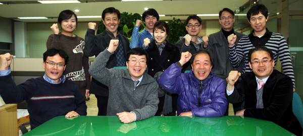▲ 뒷줄 왼쪽부터 총무 박효선씨, 박병기 차장, 이용준VJ, 황정현 기자, 운전 김현서씨, 윤우용 차장, 전산담당 우종택씨. 앞줄 왼쪽부터 박재천 차장, 김장국 본부장, 민웅기 부장, 심규석 차장. (연합 충북취재본부 제공) |
