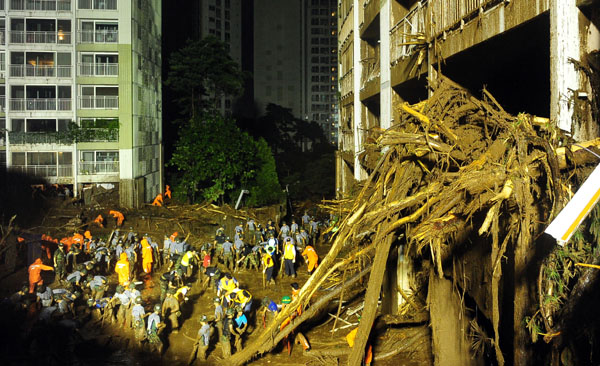 | ▲ 27일 서울 방배동 레미안아트빌 아파트에서 소방방재청 중앙119구조단(단장 이동성) 대원들이 산사태로 매몰 된 희생자를 구조하고 있다. (뉴시스=소방방재청 중앙119구조단 제공) | ||