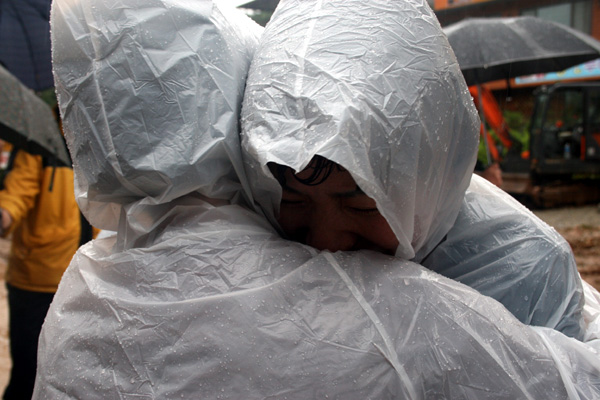 | ▲ 27일 춘천시 신북읍 천전리 소양강댐 인근에서 산사태가 발생, 펜션 등 3곳에서 투숙객 40여명이 매몰돼 이 중 인하대 대학생 이모(20)씨 등 13명이 숨지고 김모(22)씨 등 26명이 중경상을 입었다. 이날 오후 사고로 목숨을 잃은 인하대학교 학생 유족들이 사고현장을 찾아 오열하고 있다.(뉴시스) | ||