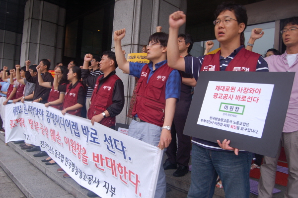코바코 노조는 이원창 신임 사장이 첫 출근한 지난 14일부터 12일째 아침 집회를 여는 등 ‘사장 퇴진 투쟁’을 벌이고 있다.