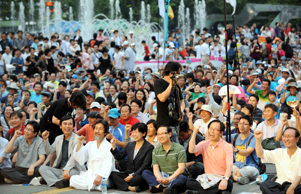 ▲ 3차 희망버스 행사에 참가한 정치인과 시민 등 수천 명이 지난달 30일 오후 부산역 광장에 모여 문화행사를 즐기고 있다. (뉴시스) |