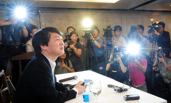 | ▲ 안철수 서울대 융합과학기술대학원장이 6일 오후 서울 광화문 세종문화회관에서 박원순 상임이사와의 후보단일화에 대한 입장을 밝히는 기자회견을 하고 있다.(뉴시스) | ||