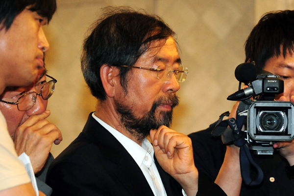 | ▲ 안철수 서울대 융합과학기술대학원장과 박원순 희망제작소 상임이사가 6일 오후 서울 광화문 세종문화회관에서 후보단일화 등에 대한 입장을 밝히는 기자회견을 열었다. 이날 기자회견에서 안철수 대학원장의 서울시장 불출마 선언을 바라보며 박원순 상임이사가 생각에 잠겨 있다.(뉴시스) | ||