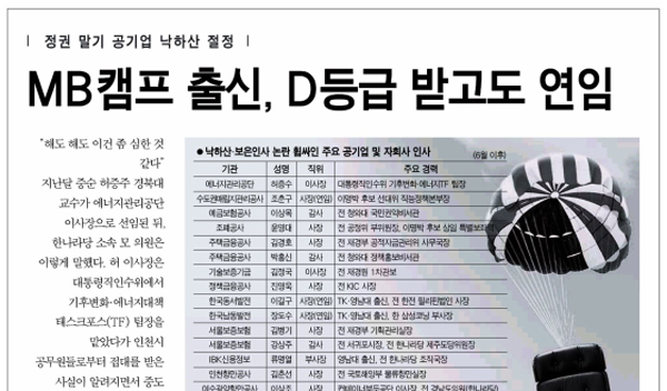 | ▲ 한국일보의 공기업 낙하산 인사 관련 보도. | ||