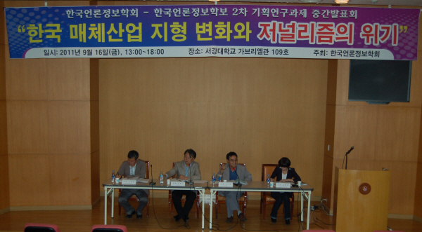 ▲ 한국언론정보학회 2차 기회연구과제 중간발표회인 ‘한국 매체산업 지형 변화와 저널리즘의 위기’가 16일 서울 마포구 서강대학교에서 열렸다. |