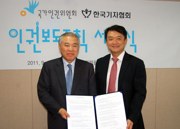 한국기자협회(회장 우장균)와 국가인권위원회(위원장 현병철)가 언론인을 위한 인권보도준칙을 제정했다.