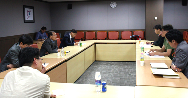 ▲ 23일 MBC 노사가 김재철 사장과 정영하 노조위원장이 참석한 가운데 본교섭을 벌이고 있다. (전국언론노조 MBC본부 제공) |