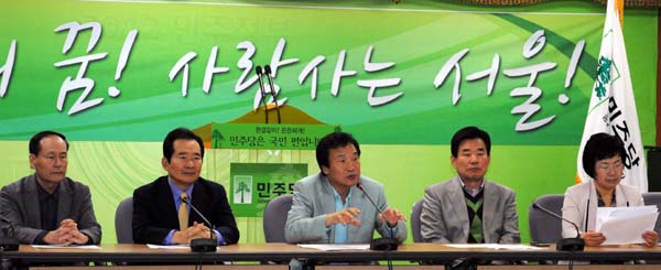 | ▲ 범야권 서울시장후보 선거가 시작된 3일 오전 서울 영등포 민주당사 회의실에서 열린 민주당 의원 총회에서 손학규 대표가 범야권 후보 관련 이야기를 하고 있다.(뉴시스) | ||