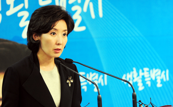 | ▲ 한나라당 나경원 서울시장 후보가 2일 오후 서울 여의도 당사에서 생활공감 정책 발표를 하고 있다. (뉴시스) | ||