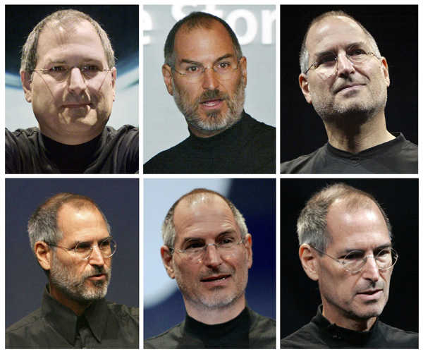 | ▲ 여섯장의 사진에 스티브 잡스의 변해가는 외모가 담겨 있다. 윗줄 왼쪽부터 2000년 7월, 2003년 11월, 2005년 9월, 아랫줄 왼쪽부터 2006년 9월, 2007년 1월, 2008년 1월. (뉴시스) | ||
