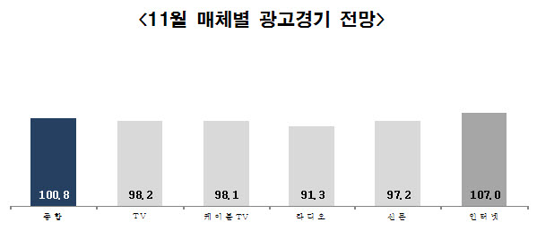 호조를 보이던 국내 광고시장이 11월 숨고르기에 들어갈 전망이다.