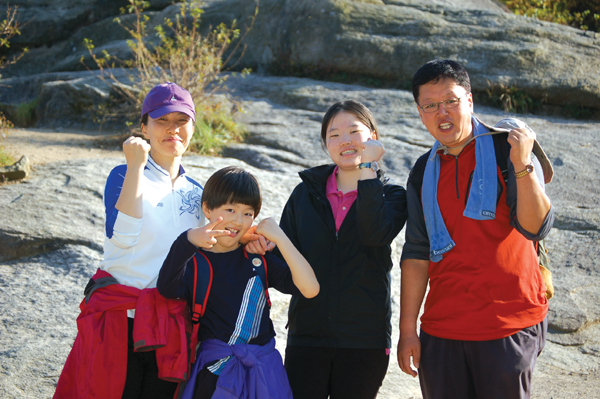▲ 뉴스핌 곽도흔 기자(맨 왼쪽)는 아버지 곽성규씨와 어머니 안풍옥씨와 함께 산에 올랐다. |