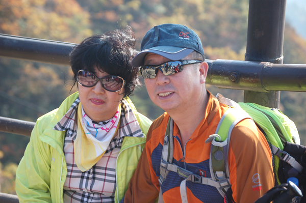 충청매일 전재국 기자(부여주재 취재부장)는 부인 정귀선씨에게 “이거 보려고 그 험한 길을 올라왔네”라고 웃음을 지어 보였다. 전 기자는 “문장대는 올해 처음 올라왔는데 경치가 참 좋다”면서 “단풍이 군데군데 물들어 가을 향기가 난다”며 한참동안 문장대 주변 경관을 감상했다.