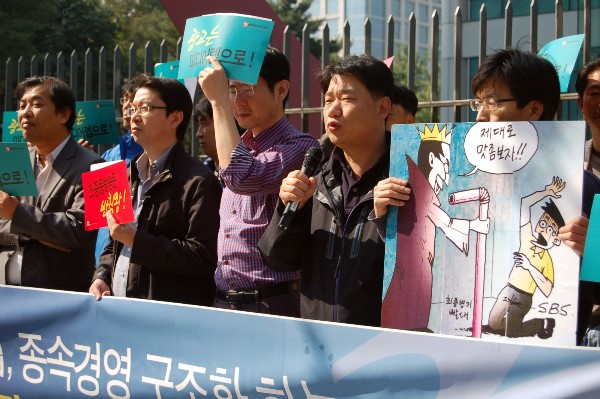 이날 기자회견에서 이윤민 언론노조 SBS본부장은 SBS 경영진을 향해 "주주와 시청자들의 이익을 대변하지 않고 SBS홀딩스의 렙 설립 시도를 지지, 묵인한다면 주주대표소송과 배임죄 등을 통해 그 책임을 확실히 물을 것"이라고 경고했다.