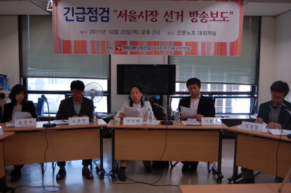 | ▲ 전국언론노동조합과 민주언론시민연합 공동 주최로 20일 언론노조 대회의실에서 '긴급 점검-서울시장 선거 언론보도 실태' 토론회가 열렸다. | ||