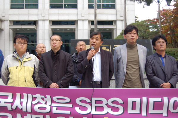 이강택 언론노조 위원장은 “그동안 윤씨 부자는 법적 권한 없는 지주회사를 동원, 규제 공백을 이용해 오직 돈벌이에만 집중해 왔다”며 “이번 세무조사가 공공성을 지키는 지상파 방송사 SBS로 다시 서기 위한 출발점이 돼야 한다”고 말했다.