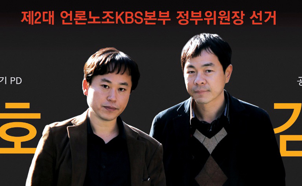 ▲ KBS 새 노조 2기 위원장 후보로 출마한 김현석 기자(오른쪽)와 부위원장 후보로 출마한 홍기호 PD. |
