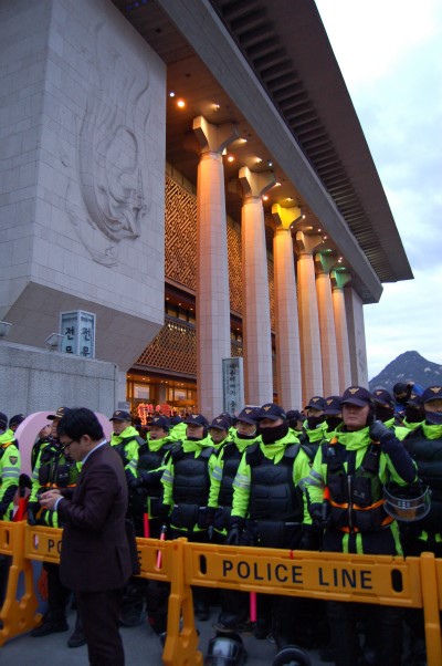 ▲ 이날 종편 개국쇼와 언론노조 규탄 집회가 동시에 열린 세종문화회관 주변에는 3000여 경찰력이 배치돼 긴장감을 조성했다. |