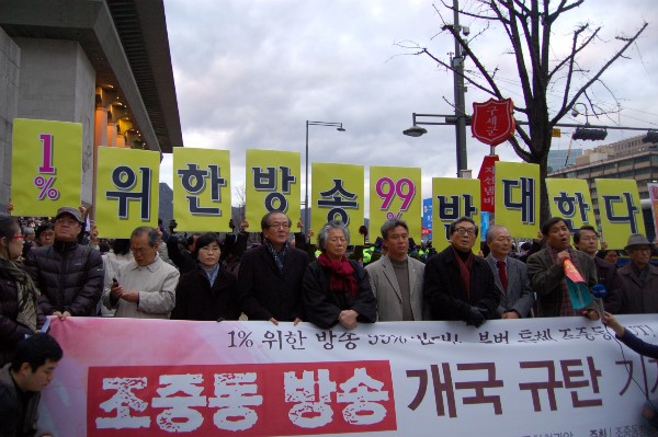 김영호 언론광장 공동대표는 시민들을 향해 “‘조폭 방송, 강도 방송’ 조중동 방송을 보는 것은 여러분의 주머니를 털고 민주주의 파괴에 협조하는 일”이라고 경고했고, 홍세화 신임 진보신당 대표 또한 “조중동 방송은 보지도 말고 듣지도 말자”며 시청 거부 운동을 제안했다.
