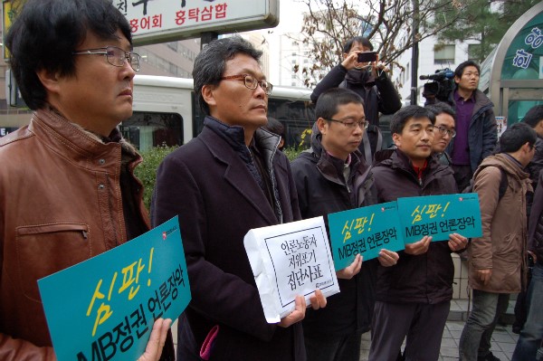 이날 한겨레, 한국일보 등과 함께 백지광고를 게재한 경향신문의 강진구 지부장은 “1면에 백지광고를 낸 것은 경향신문 창간 65년 만에 처음 있는 일”이라며 “윤전기를 세웠던 자유당 정권보다 이명박 정권이 더 하다”고 일갈했다. 그는 “1면의 백지 광고는 이명박 정권의 무도한 종편 특혜로 벼랑 끝에 선 언론의 자화상”이라며 “여기서 교훈을 얻지 못하고 계속 종편에 대한 특혜를 거듭한다면 국민 심판을 면치 못할 것”이라고 덧붙였다.