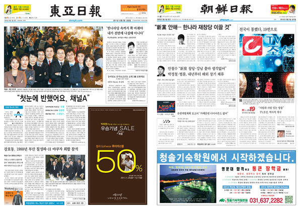 1일 개국한 채널A, JTBC, TV조선, MBN 등 종합편성채널 보도 프로그램의 주인공은 한나라당의 유력 대선주자인 박근혜 전 대표였다. 1일에 이어 2일 종편 모기업 신문들은 1면에 박 전 대표의 얼굴과 함께 인터뷰 기사를 실었다. 박 전 대표는 4년여만의 언론 인터뷰 효과를 톡톡히 누린 셈이다.